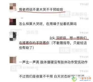 从聊天记录中可以看出几个关键信息:一是这个群中是有专门的引导老师的,但是不确定老师是否具备专业的育儿资质;二是从时间来看,孩子至少在死亡线上挣扎了有2个小时,这位妈妈却没能抓住任何一个挽救孩子生命的机会;三是这个群中还有不少宝妈,都在对自己的孩子进行类似的训练。