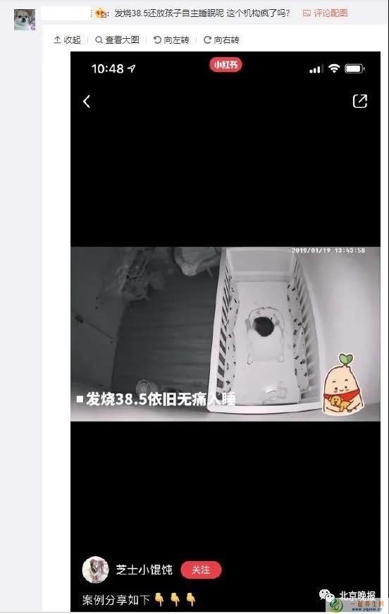事件中的妈妈在线上参加了一个“训练婴儿睡眠”的课程,主要是锻炼孩子从小就和母亲分房睡的能力,她因此加入了某个付费指导群,根据指导让三个月大的孩子自己在房间里午睡,妈妈在外面看监控,训练宝宝独立入睡的能力。